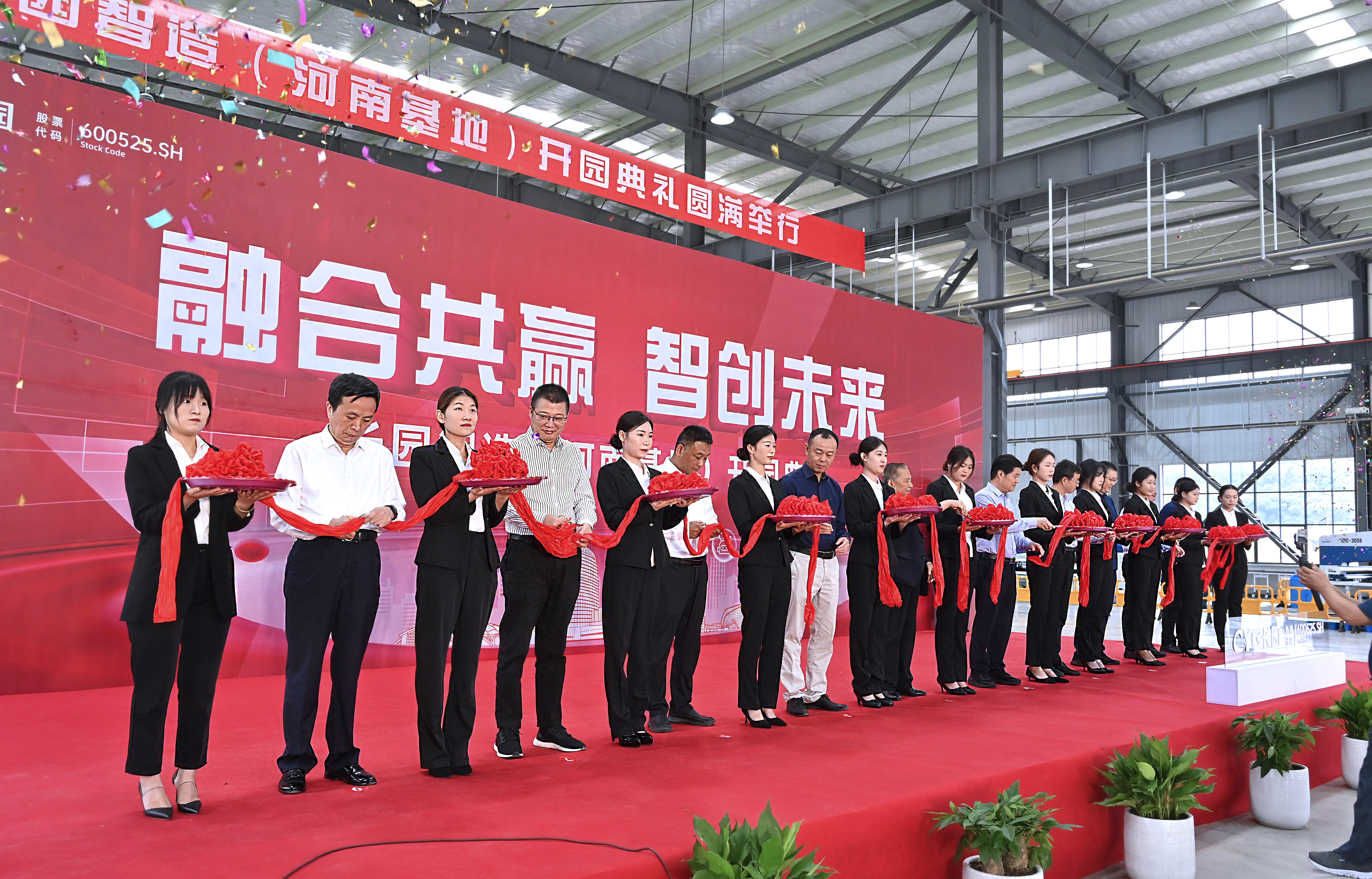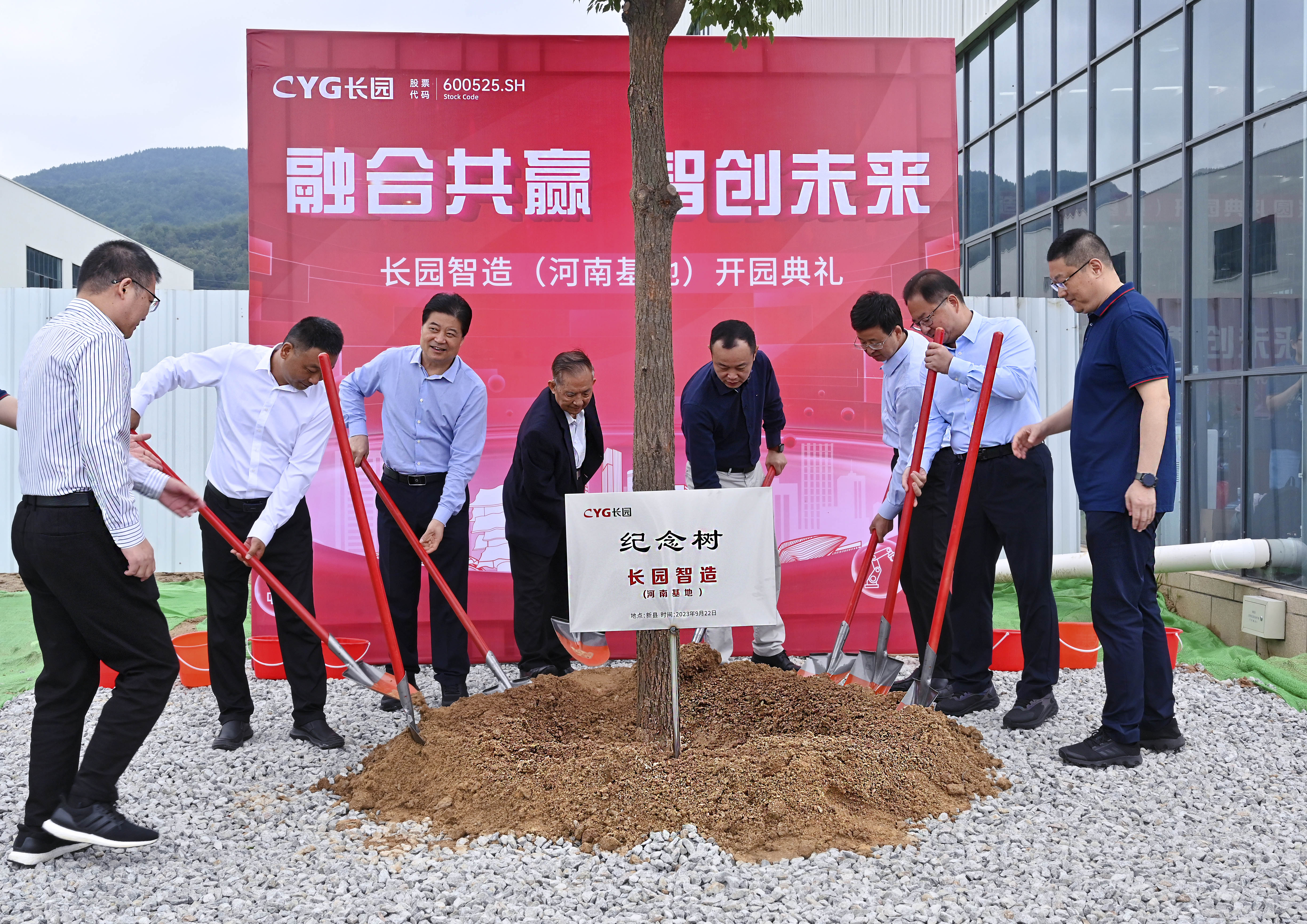 参与剪彩仪式的10位嘉宾领导在一声声倒数及礼炮声中同执金剪,并在基地共同种下一棵香樟树以作纪念。香樟树枝繁叶茂,四季常青,寓意着mile米乐智造(河南基地)将像香樟树一样生命力顽强旺盛、扎根新县繁荣生长。